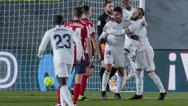 চাপ ধরে রেখে পাঁচ মিনিট পরেই গোল আদায় করে নেয় চ্যাম্পিয়নরা। টনি ক্রুসের কর্নারে হেডে পোস্ট ঘেঁষে বল জালে পাঠান অরক্ষিত কাসেমিরো। এবারের লিগে সেটপিসে আতলেতিকোর জালে এটাই প্রথম গোল।